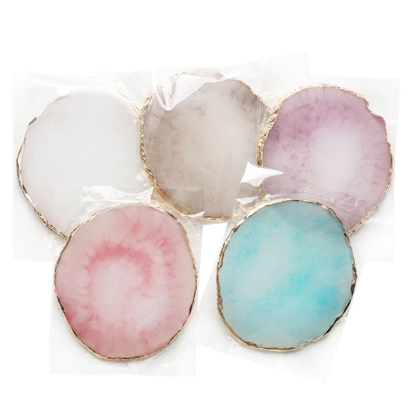 2. Made of resin material, imitate Natural agate gemstones, with golden edge covering, round shape and elegant vibrant color, looked vivid like real agate, but more wear-resistant and broken resistant.