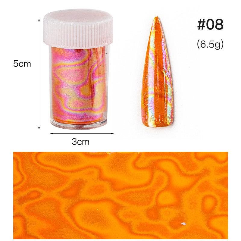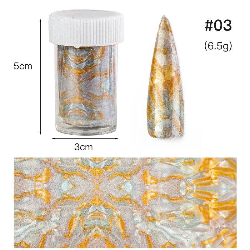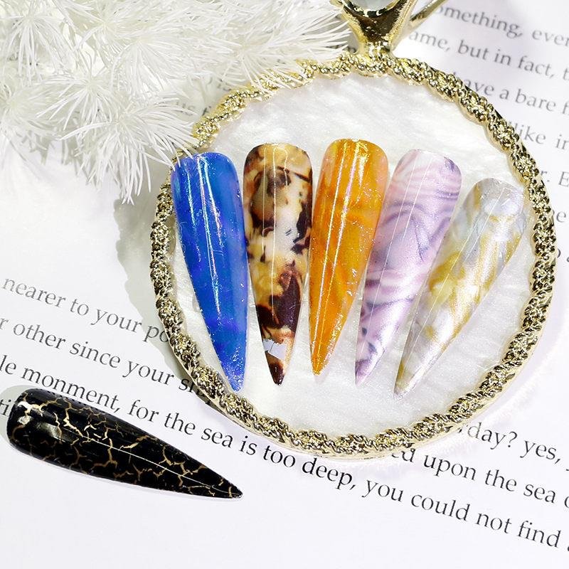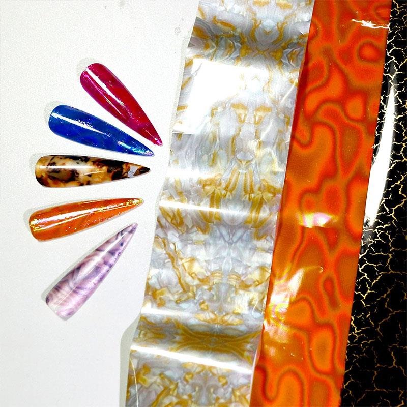 - 8 Different Shell-style patterns of nail transfer foil allow you to DIY your unique nail designs and the nail art foil also could be applied to your toenails.