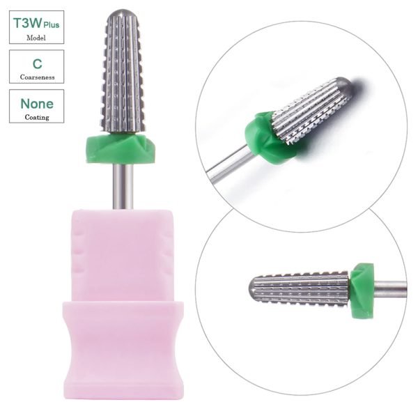 3/32” Small Volcano Shape Straight Cut None Coating Tungsten Carbide Nail Drill Bits – Model T3W Plus