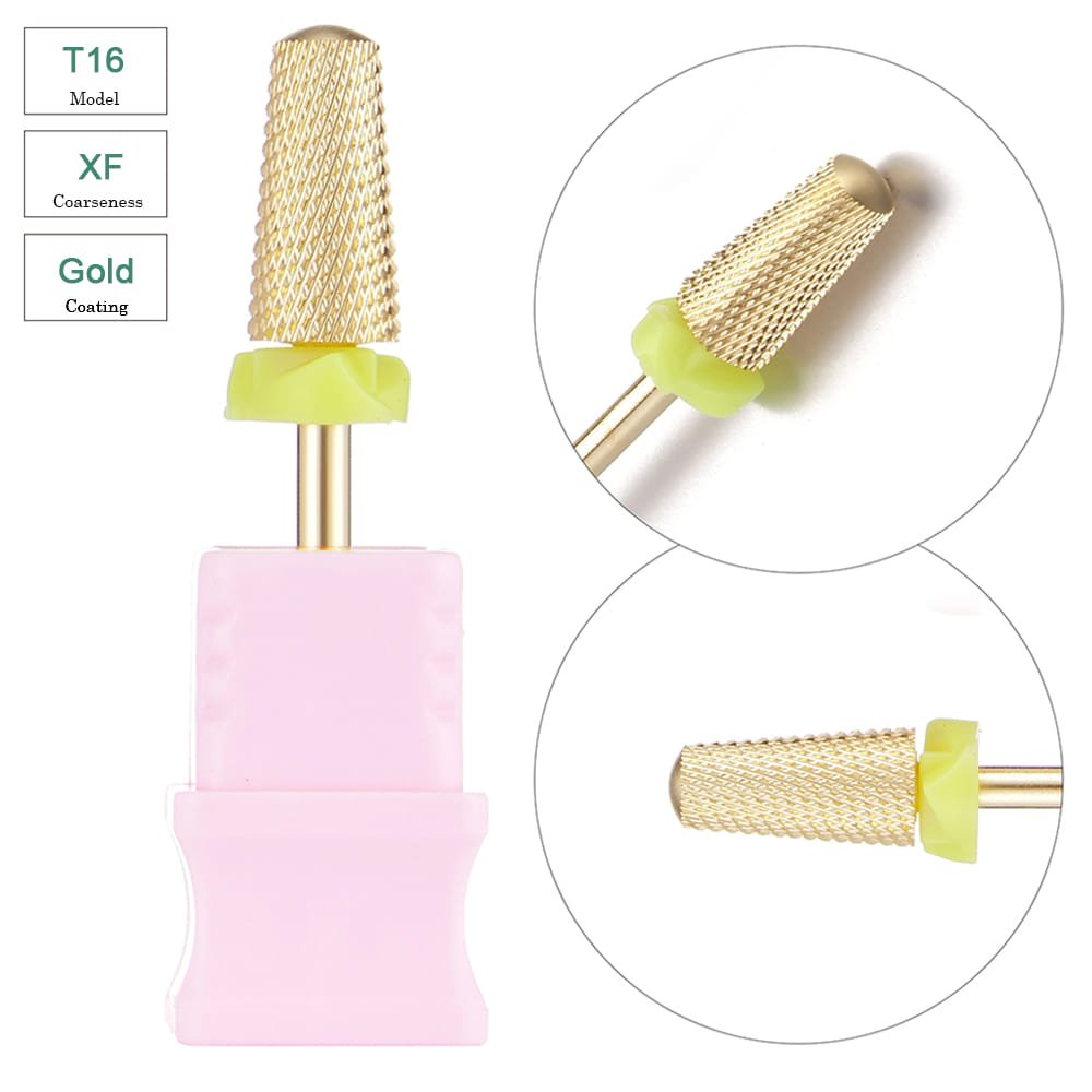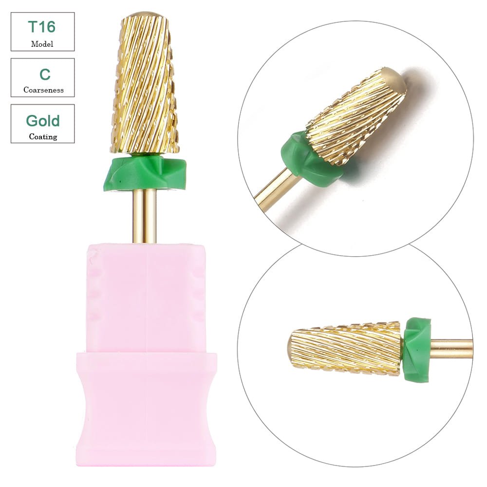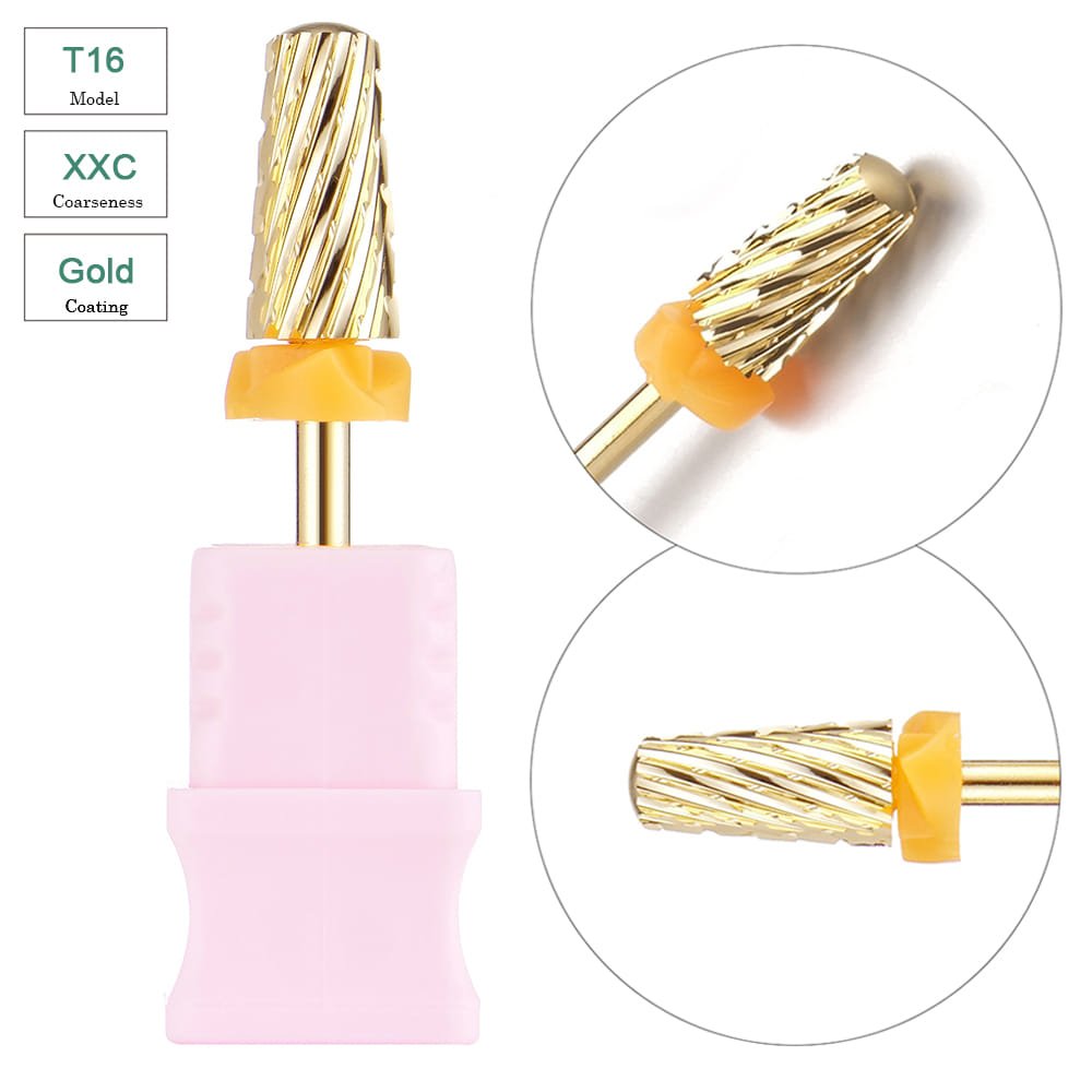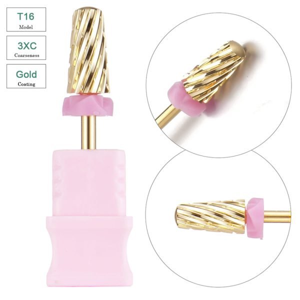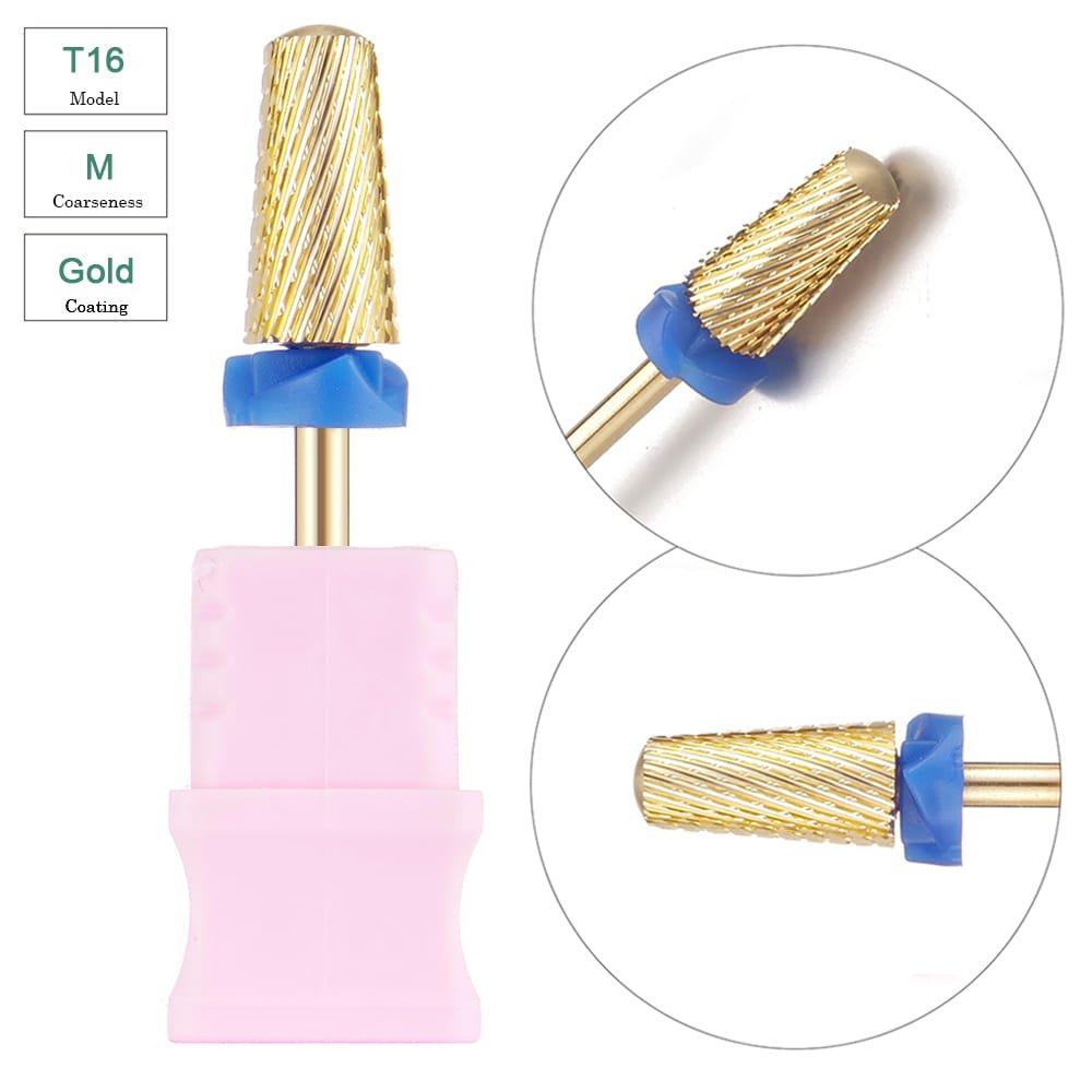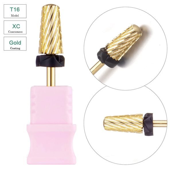 3/32” Volcano Shape Cross Cut Gold Coating Tungsten Carbide Nail Drill Bits – Model T16